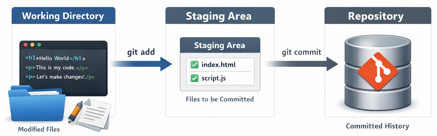 Working Directory → Staging Area → Repository