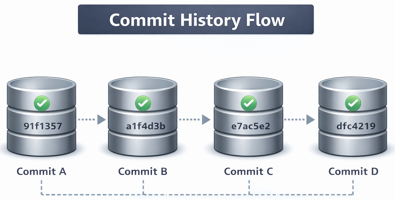 Commit A → Commit B → Commit C → Commit D